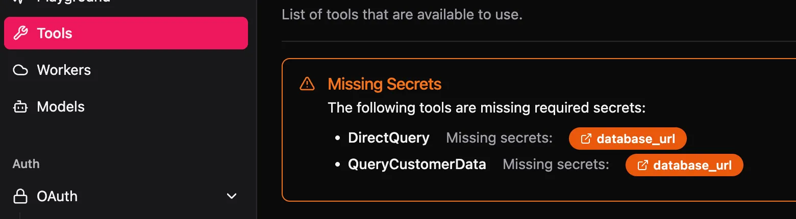 @tool(requires_secrets=["database_url"])