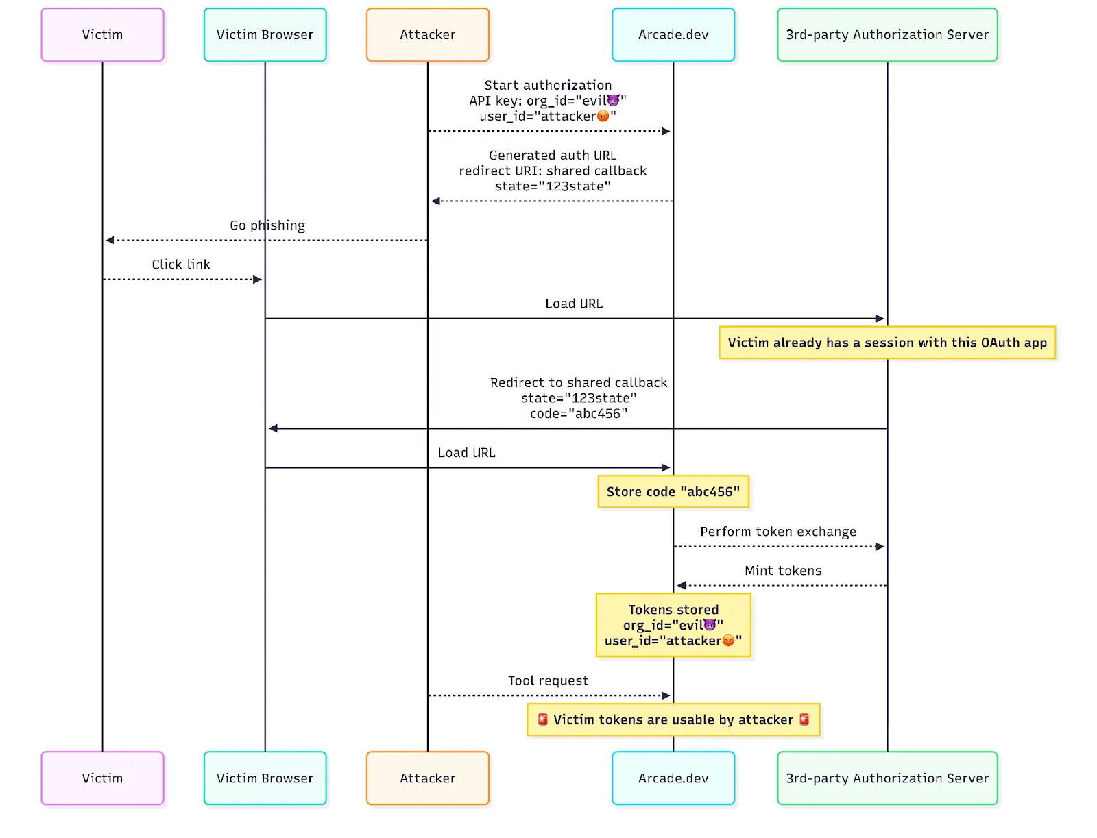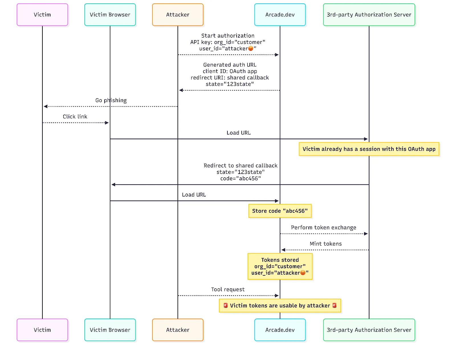 This isn’t a passive vulnerability. It requires active phishing. The victim must click a malicious link and, in most cases, actively consent to authorization. But as any security team knows, phishing and spearphishing are effective attack vectors… and when you are an agentic runtime like Arcade, the human factor is a risk worth addressing.