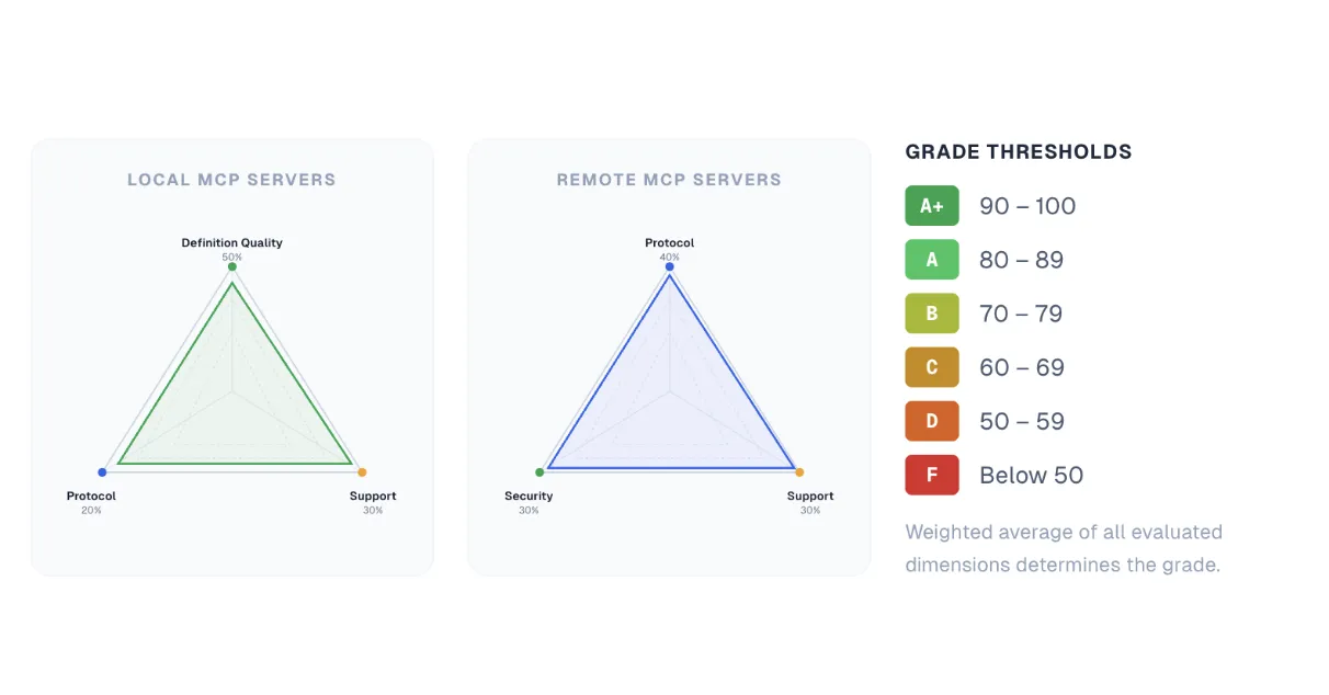 ToolBench grades every MCP server across definition quality, protocol compliance, security, and supportability. 41,902 servers indexed. Only 0.5% earned an A or above.